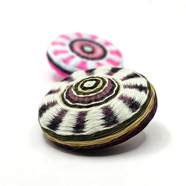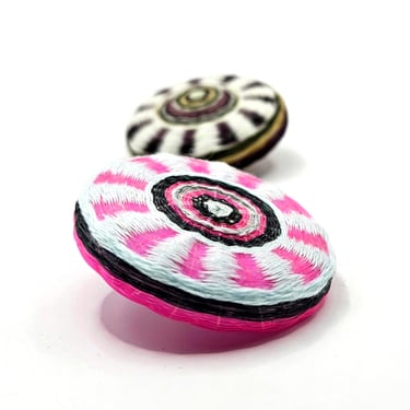 Crin de caballo, fibra vegetal, monofilamento, hilo fotoluminiscente, acrílico grabado láser, pin alpaca y acero.