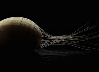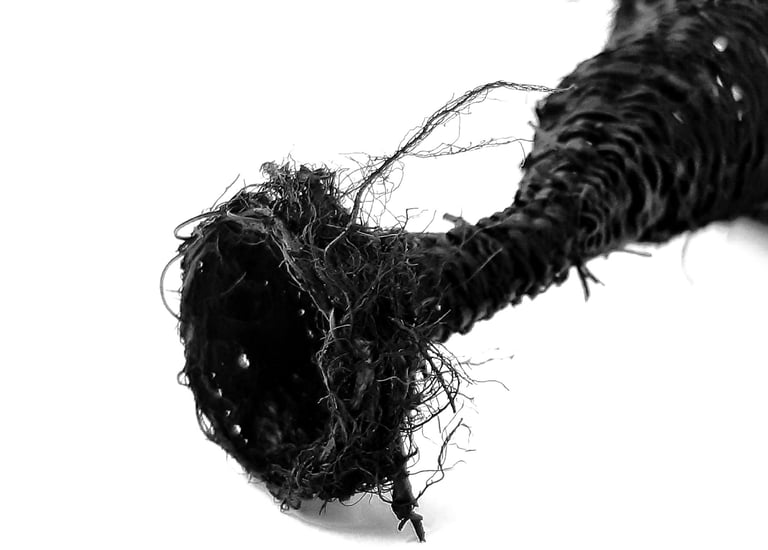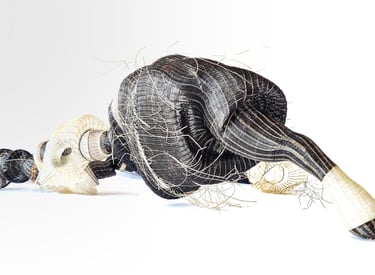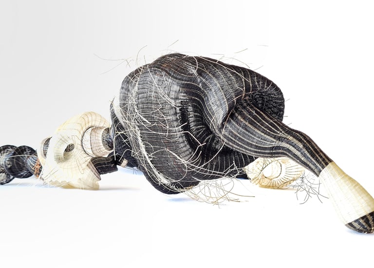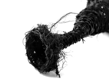 She works with materials charged with memory to weave narratives where the personal intersects with the collective. Her pieces, conceived as unique works, explore the fragility and resilience of matter, as well as the memory embedded in the repetitive gesture of weaving.